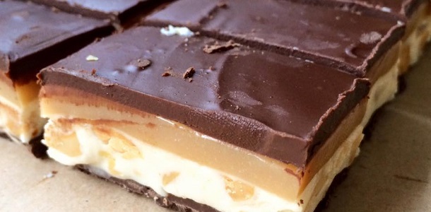 – Sacar son cuidado el papel aluminio y cortar a gusto. En barritas igual a los Snickers, en cuadrados, bocaditos o barras gigantes para que alguien se caiga de culo.