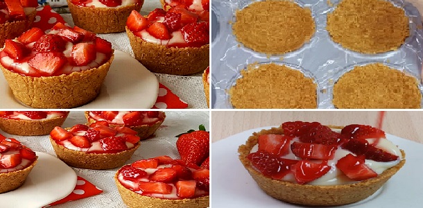 Tartaletas de crema pastelera y fresas, postre sin horno!