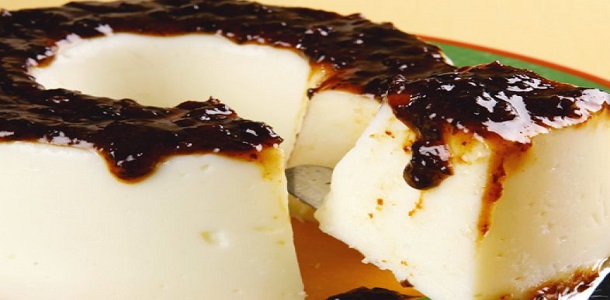Calda: Ponha em uma panela a água, a ameixa, o adoçante e a baunilha. Leve ao fogo baixo até levantar fervura. Retire do fogo e bata no liquidificador até formar um purê. Desenforme o manjar e sirva com essa calda.