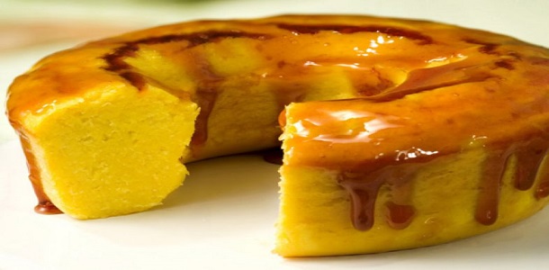 Retire do fogo e transfira para uma tigela para que não escureça demais. Desenforme o pudim e sirva com o caramelo.