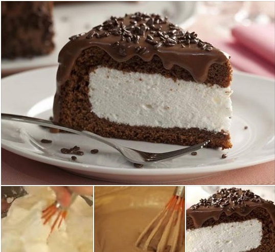 Coloque o marshmallow na cavidade do bolo e coloque a tampa reservada. Cubra com filme plástico e leve à geladeira por 1 hora.